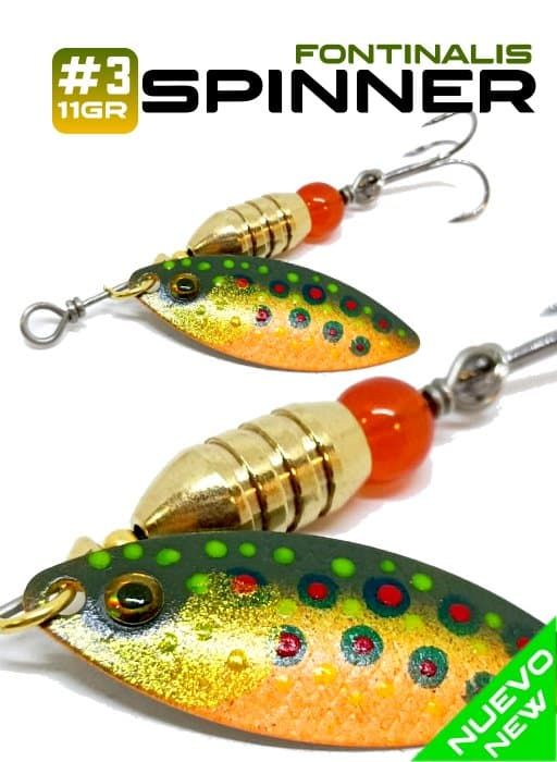 Spinner de Diseño exclusivo imitación al Alevín de Trucha Fario, ideal para pescar truchas en ríos correntosos.